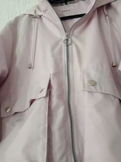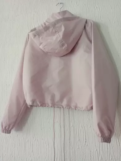 Chamarra rompe vientos color rosa palo con todos sus broches en perfectas condiciones, tiene capucha y ajuste de ella , cuenta con cordones en la parte de abajo para ajustar a tu medida .Largo 53 cm .Axila a axila 52 cm .