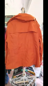 Chamarra rompevientos con gorro color naranja,Es muy ligera, no tiene ningún detalleLa talla es L