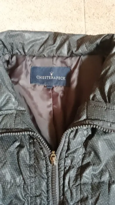 Chamarra tipo cazadora. Talla G. Forro satinado. Se compró en Palacio del Hierro. De cierre. Bolsillos laterales funcionales. Es negra o gris oscuro con textura impresa como se muestra en las fotos.