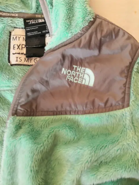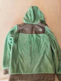 Chamarra de niña marca THE NORTH FACE color vede menta con gris, en excelente estado, dice talla 14-16 de niña pero considero que queda a talla de 10 hasta 12 - 13 años, sin ningún detalle, en excelente estado.