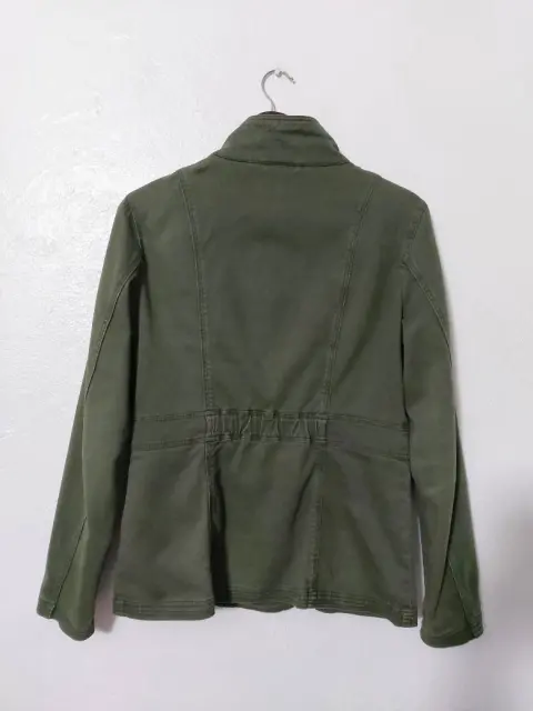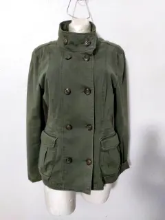 Chamarra tipo cazadora. Preciosa!Color verde seco (tal cual las fotos, no es intenso)Talla 8, queda muy bien a M.Sin detalles y en perfecto estado.