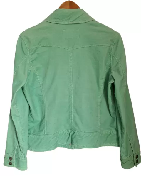 Chamarra tipo pana. Chamarra tela tipo durazno en color menta, super suave al tacto. Con botones metalicos al frente.