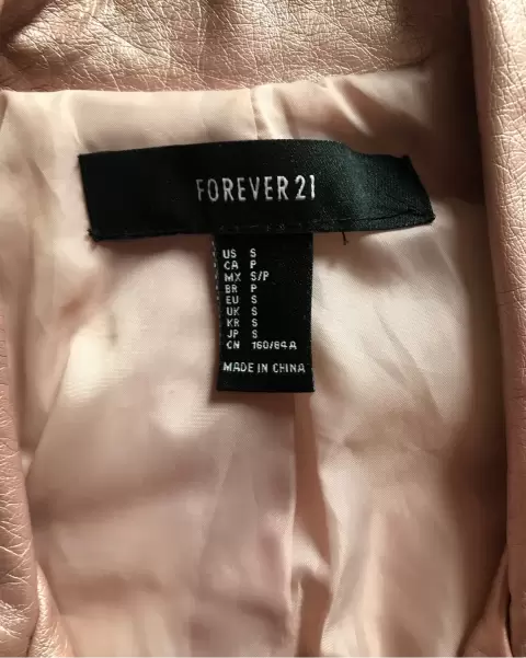 Chamarra tipo piel, rosa metálica, con detalles en plateado, el cierre esta a un costado, dos bolsas frontales, muy original