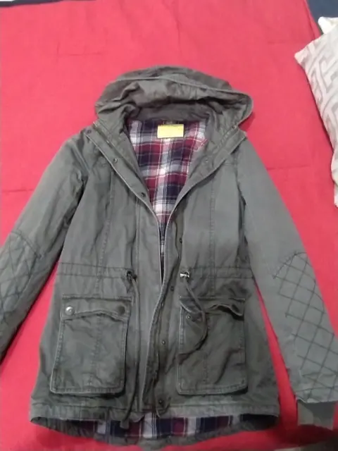 Chamarra verde con forro por dentro de cuadros , gorro y bolsas en la parte frontal en perfecto estado