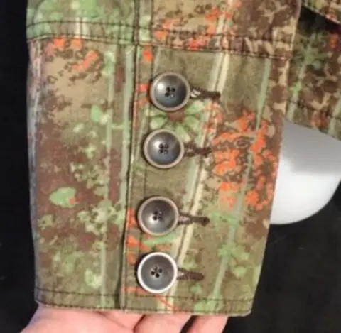 Su tela es de gabardina , es corta amolda muy bien la cintura tiene botones metalicos cuello mandarin con bonitas bolsas