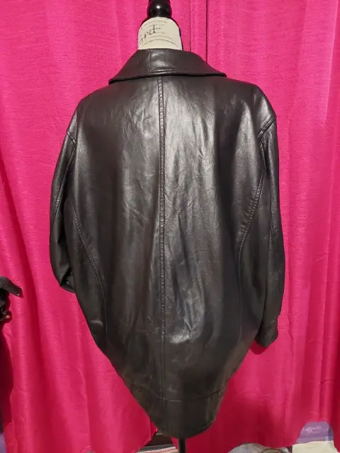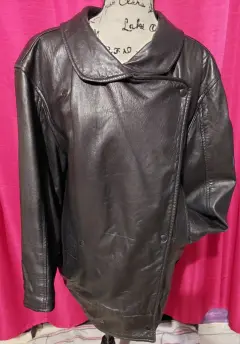 Chamarra Vintage de piel. Auténtica piel muy suave y fina, tiene corte tipo motociclistas, no obstante, es larga, en foto medida, es talla XL a 1XL, pero es bombacha y angosta de cadera por lo que quedaría Oversize, está hermosa, manga larga, no tiene detalles, probablemente pintura,pero está intacta, siento que está en excelente estado. No está rota, rasgada, en las fotos se nota las medidas de axila y cadera.