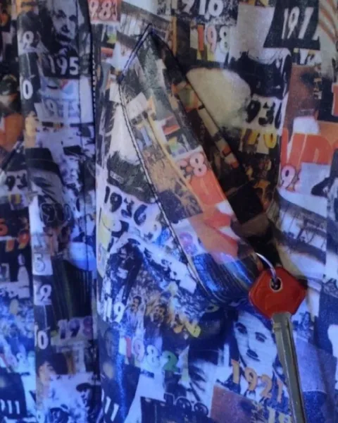 Chamarra ligera, vinilEstampado de las décadas ¡Lleno de pop!Capucha, sus mangas son ceñidas.T: LMedidas:Axilas: 60cmLargo: 72cm