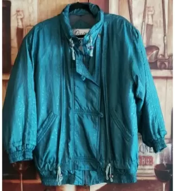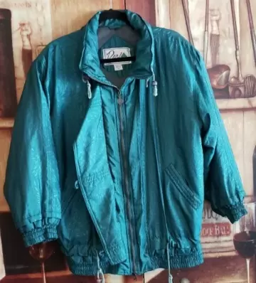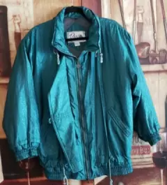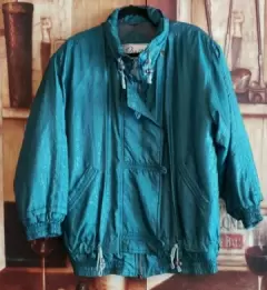 Chamarra Vintage satinada verde. Hermosa chamarra Vintage súper calentita talla M con cintas ajustables color verde tela satinada estampada excelente estado sin detalles lucen estilo Retro espectacular 💚😍