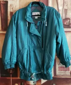 Hermosa chamarra Vintage súper calentita talla M con cintas ajustables color verde tela satinada estampada excelente estado sin detalles lucen estilo Retro espectacular 💚😍