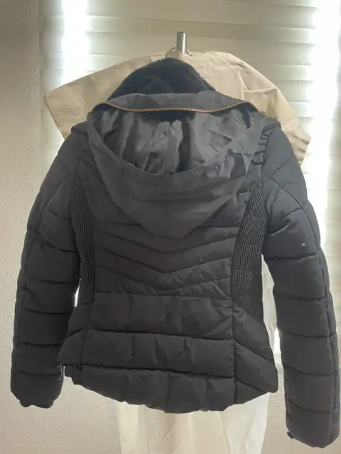 Chamarra Zara. Zara Chamarra mujer Color Negro Talla 24 Material Stretch Cierre y Broches dorados Cuello Capucha con cierre Mangas con resorte Estado Usado una vez Precio 1450Medidas en centímetros Ancho hombros 38Busto 90Lado 55Largo mangas 60 Resorte en la mangas 5 cm de largo
