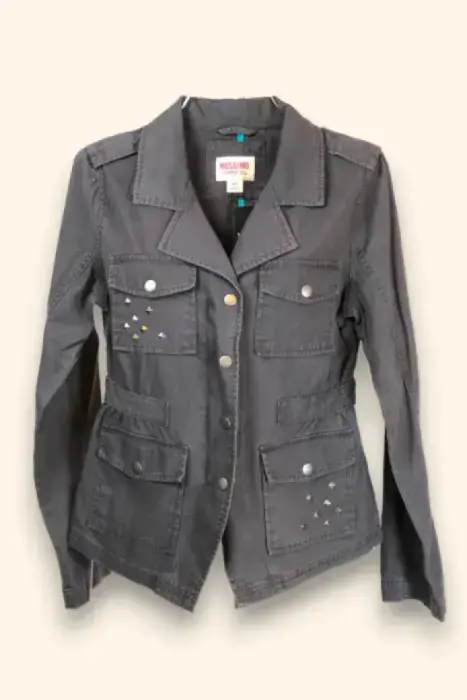 Chamarrita Mossimo está lo Máximo!!! es un tono café, con estoperoles en las bolsas de enfrente tiene cierre y botones, la use para una sesión de fotos, que no te la ganen!! 😍👉Obtén 10% de descuento con mi código: Pinky