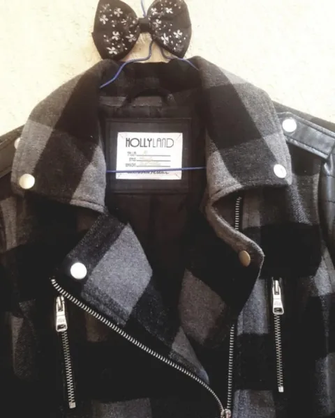 Chamarrita tipo biker Hollyland. Linda chamarrita de tela tipo lana y mangas en polipiel, está en muy buen estado a excepción de los puños que por el uso se le cayó la piel, pero no se ve mal ya que como es negra no se nota *Talla M* *Calificación: 8* *NO OFERTES NI BLOQUEES PRENDAS SI NO PIENSAS COMPRAR*GRACIAS POR TU PREFERENCIA*