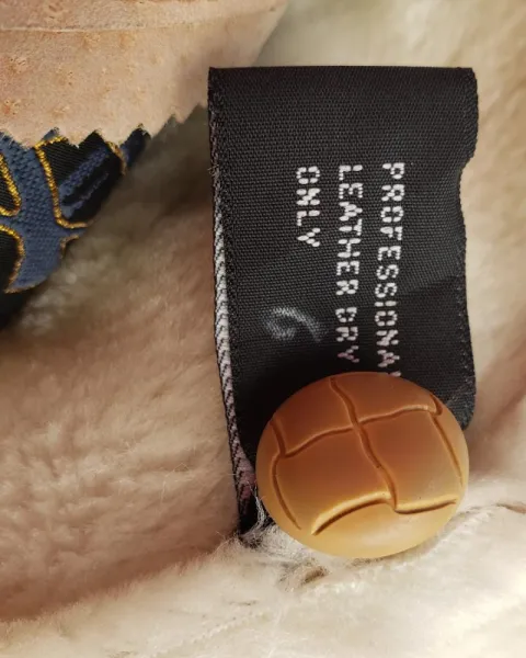 hermosa chamarra corta de piel autenticatalla grande pero viene reducido por lo cual queda desde una talla mediana. borrega autentica de forro en cuello y mangasya incluye tintoreria y tratado especial de pieles.