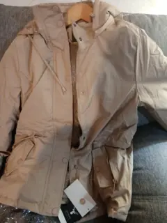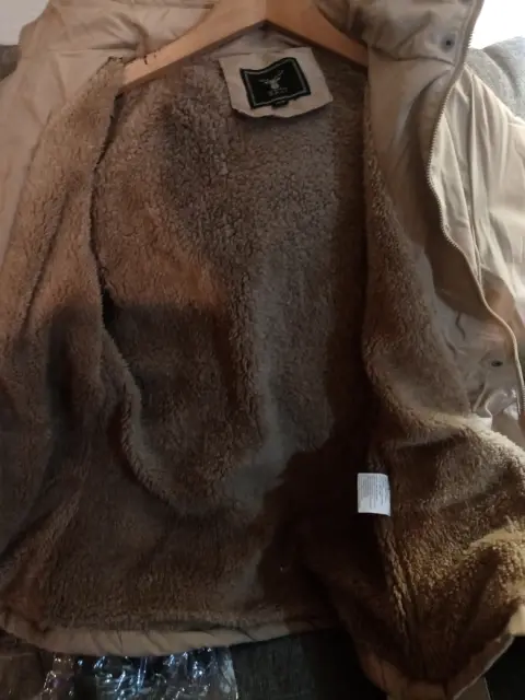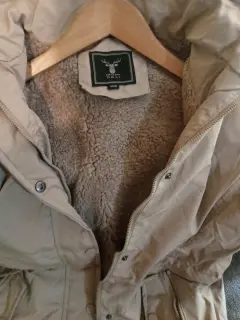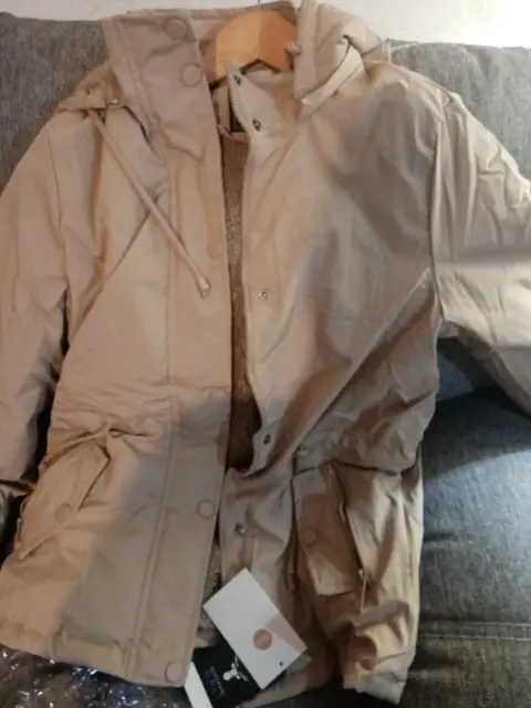 Hermosa chamarra, talla m, nueva con etiqueta con borreguita x dentro, color beige, con gorro desmontable, ultimo precio.