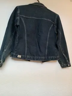Hermosa y juvenil chamarra de Denim, sin detalles, talla mediana color azul