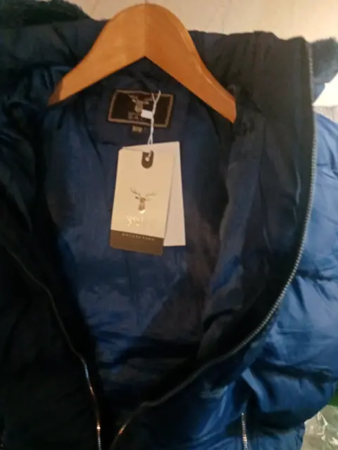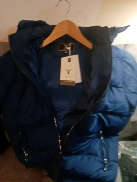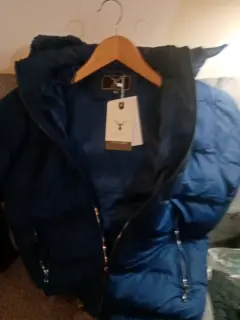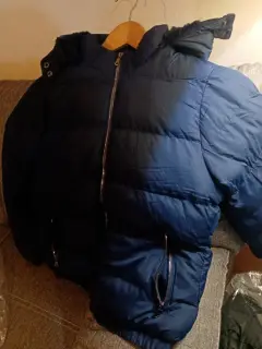Hermosa chamarra, nueva con etiqueta, color azul, talla ch/m, con borreguita x dentro, ultimo. Precio.