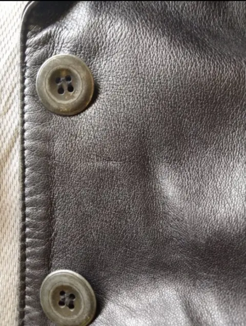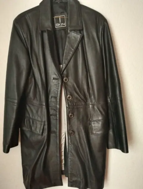 Hermosa chaqueta negra de piel.. 100% piel.Talla grande, larga, abajo de la cadera.