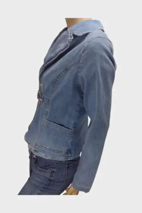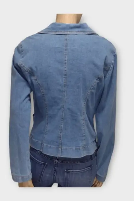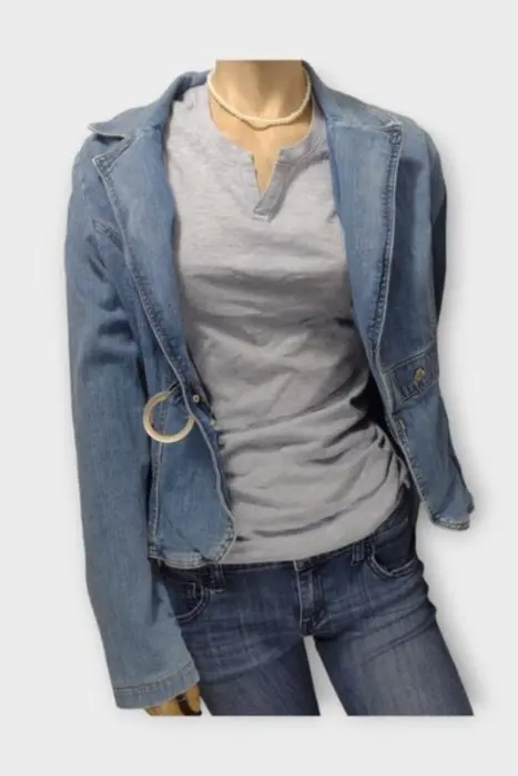 HOTKISS Chamarra Dama Mezclilla Azul SHermosa chamarra de Mezclilla marca Hotkiss Marca: HOTKISSOrigen: ChinaMaterial: AlgodónTalla: SEstilo: CasualPatrón: CasualColor: Azul MarinoCierre: BrochePecho: 50 cmLargo: 57 cmHombro: 41 cmManga: 62 cm Ropa de USO en muy buen estado