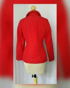 Jacket Acolchada Ligera Bien ROJO. Jacket acolchada ligera en tela color ROJO FUEGO, cuello clásico c/solapas, cierre p/snaps, 2 bolsos vivo c/tapeta, bies en zona cuello, frontal y bolsos y forro fantasía interior. Talla M. Dimensiones cms: 40 hombro, 53 axila, 47 cintura, 57 zona baja, 66 largo, 61 largo manga. 100% poliéster. P/lavado en seco.***LA JACKET TIENE UN COLOR MUY BELLO QUE NO CAPTA ADECUADAMENTE LA FOTOGRAFÍA***