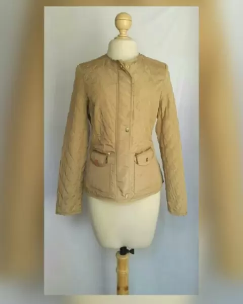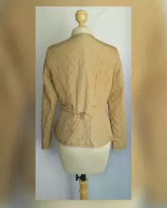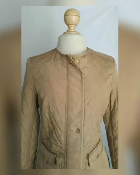 Jacket Ligera Acolchada efecto Brillo AVELLANA. Jacket acolchada ligera efecto brillo color DORADO AVELLANA, cuello redondo, cierre p/cremallera oculta p/tapeta c/snaps, 2 bolsos plastrón delanteros c/cremallera y tapeta c/snaps, elástico trasero ajustable en cintura y forro fantasía interior. Talla M. Dimensiones cms: 38 hombro, 53 axila, 46 cintura, 57 zona baja, 52 largo, 62 largo manga. 100% poliéster. P/lavado en seco.***LA JACKET TIENE UN BRILLO Y UN COLOR MUY BELLO QUE NO CAPTA LA FOTOGRAFÍA***