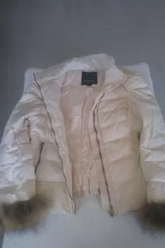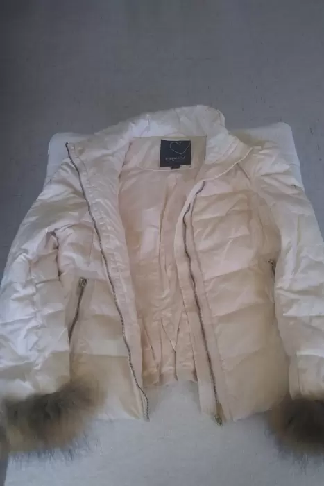 Linda y Calientita chamarra para dama de la marca Only Love collection, en color beige, con cremallera completa, bolsillos al frente y en interiores, talla XXL, queda muy bien a una talla 30, largo a la cadera, 100% nylon, 100% poliéster, relleno pluma natural, con peluche en los puños desmontables, lavado a máquina, poco uso, sin detalles, excelentes condiciones, precio regular en tienda es de $ 1,200.00, vendo en $ 500.00