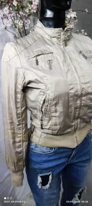 Linda chaqueta. Está peludita por dentro,tela tipo rompevientos, super cute🩷talla M