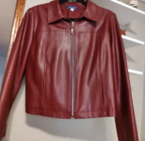 Moderna chamarra en vinipiel color vino. Moderna y hermosa chamarra con cierres, luce hermosa por que entalla tu figura a la cintura, bellísima para combinar con jeans o pantalón de vestir para un atuendo formal. Que no te la ganen es talla 34-36