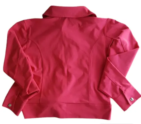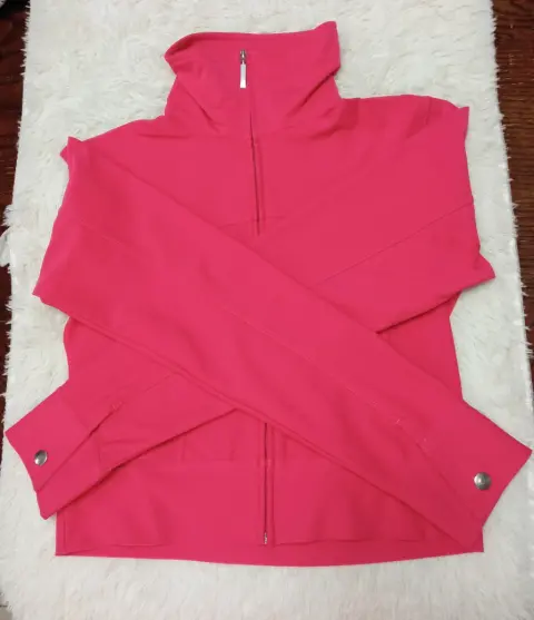 Nike Dri-Fit chamarra corta con cuello alto en color Rosa brillante, talla XS.Medidas: 43 cm de largo, 76 cm espalda-pecho, 78 cm de ancho en cintura 60 cm de largo en mangas. Cuello 10 cm de alto y 38 cm ancho.Materiales: 88% poliéster y 12 % spandex.Cierre con cremallera, botón a presión en los puños, dos bolsillos laterales, muy poco uso en excelente estado.Disponible 🤗