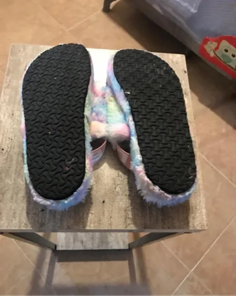 Sandalias con peluche en modelo arcoiris , talla #3 con un poco de plataforma , practicamente nuevas!