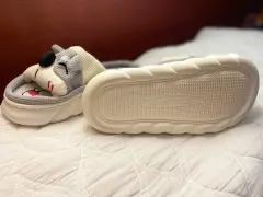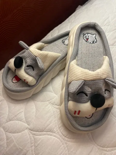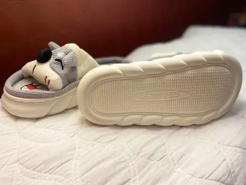 PANTUFLA CARRITA PERRO PUNTO CRUZ. PANTUFLA CARITA PERRO NUEVA, SIN NINGÚN DETALLE ES GRIS CON BEIGE PUNTO CRUZ, NO. 3 Y MEDIO DA HASTA EL 4