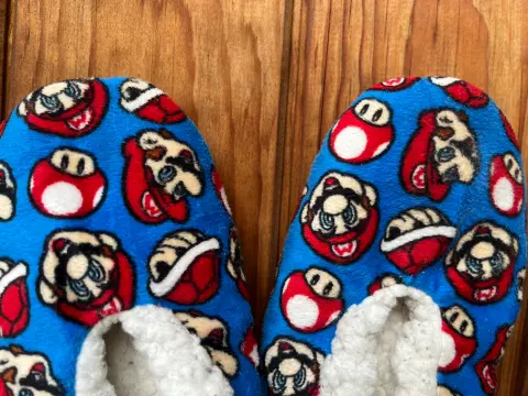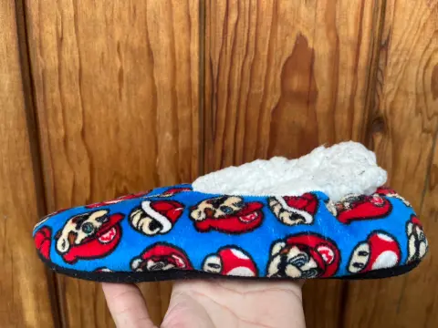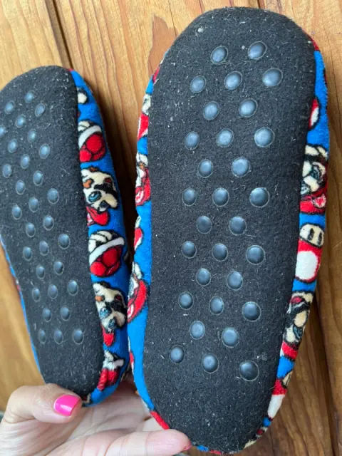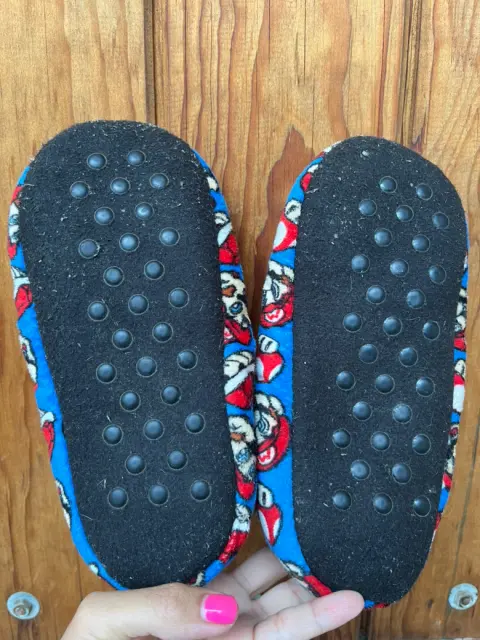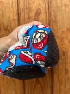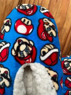 Pantuflas Mario Bros. Pantuflas para niño muy calientitas #20 , afelpadas por dentro diseño de Mario Bros , usadas pero en súper buen estado (no rotas ) están enteritas de talón y punta .