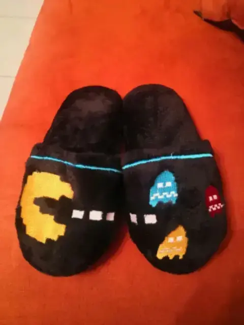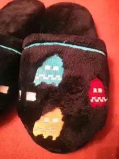 Pantuflas negras. Bonitas pantuflas color negro con diseño de pacman, #23 mexicano fiel a su número, tienen aroma a chicle, ⭐SON NUEVAS ⭐