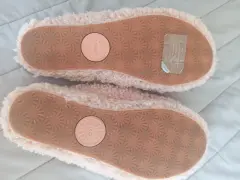 Súper hermosas pantuflas color rosa bebé, tipo borrego, con moño al frente, con plataforma, muy poco uso en buen estado. Talla 6 mx.