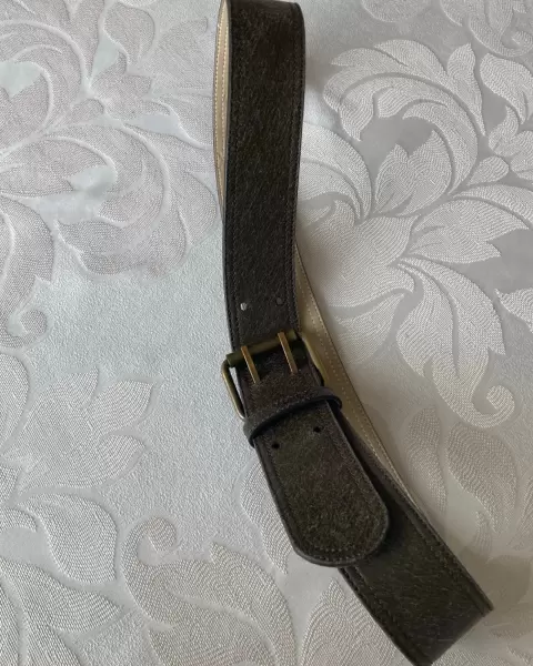 Hermoso cinturón color café de 3.5 Cm de ancho, largo 96 Cm. Tío piel el exterior e interior tipo gamuza