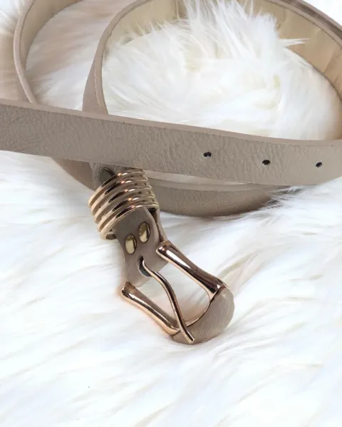 Cinturón de piel en excelentes condiciones, es color beige con hebilla en dorado, es súper combinable.