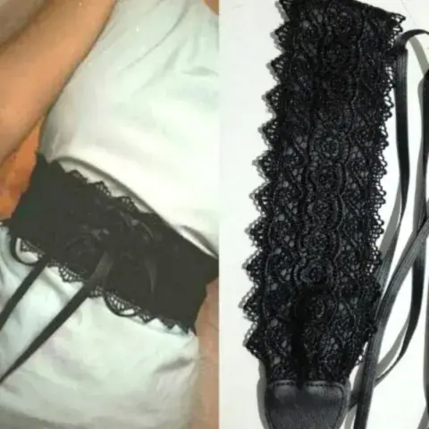 Cinturón Glamour AnchoTipo BandaColor Negro Con EncajeNuevoMaterial CuerinaUnitallaMedidasAncho 10 cmLargo 220 cmPuede quedar y ajustar a tallas : XS, CH, M, GExcelente diseño para lucir blusas, faldas, vestidos, jeans, pantalones de vestir, minifaldas, suéteres, cardigans, blazers, blusones, camisas, tops, mom jeans, con lo que mas te guste!