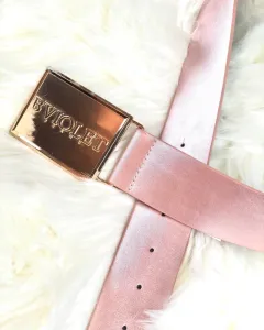 Cinturón Pink Dream B’Violet. Cinturón en rosa gloss, con hebilla de aleación de zinc dorada, el complemento perfecto para tus jeans. Solo tiene una puesta por lo que está prácticamente nuevo.