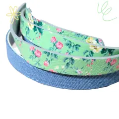Par Cintos delgados con Ebilla I.N.C International Concepts, talla grande, colores azul sólido y verde claro floreado, ebilla metalica ajustable con 7 ahujeros, hechos de piel faux imitacion, miden 98cm de largo con 1cm de ancho, nuevos a estrenar con etiqueta.