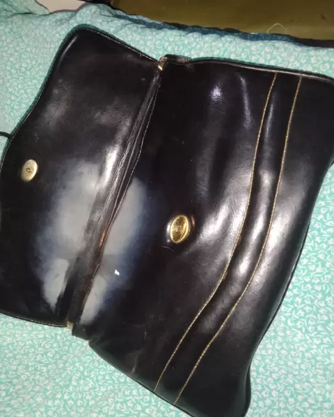 Bolsa negra con detalles doradosBoton y cierre en buen estado cierran bienBuen estádoUrge vender