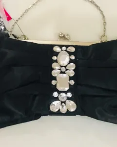 Bolsa de fiesta satín negro.. Hola chicas tengo a la venta esta linda bolsa de fiesta o de noche totalmente nueva y original.Está muy linda y tiene forma de moño, tela satín y aplicaciones plateadas.Luce original con esta bolsa que será muy linda para tu outfit de noche.