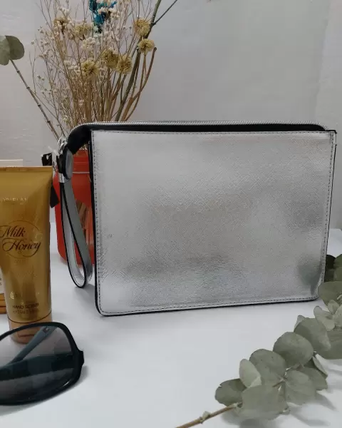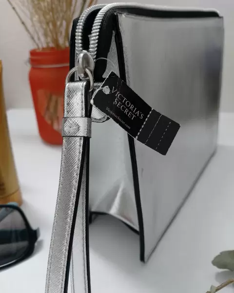 Bolsa de mano Victoria´s Secret color Plata con piedritas.Para esos eventos especiales o salidas cortas donde solo quieres llevar cel, dinero y labial.O usala como cosmetiquera