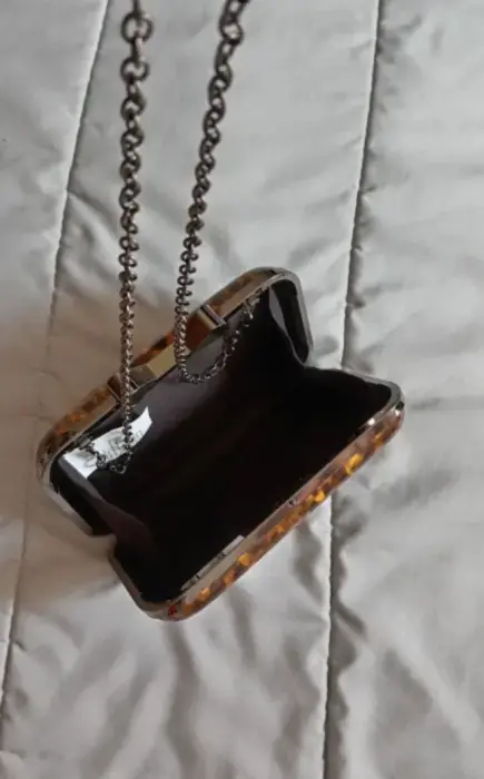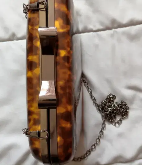 Bolsa pequeña tipo carey. Bolsa pequeña tipo carey - con asa de cadena, forrada por dentro, broche de segiridad
