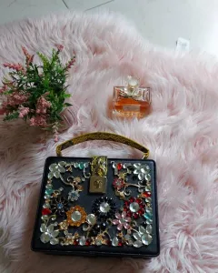 Bolsa clutch color negro con estilo barroco fantasía puedes usarlo con asa