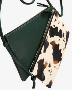 2 bolsos en 1. Nuevo, aun empacado. Uno de acabado sintético imitación piel y el otro acabado sintético imitación cuero. 24 cm de largo, 15 cm de alto y 3 de ancho. Correa del mismo acabado, de 48 cm. Los bolsos se pueden usar por separado.