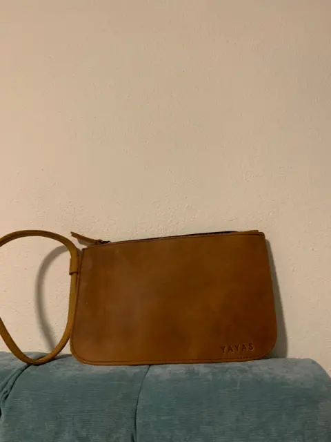 Clutch de Mano YAYAS color caramelo NUEVA. Bolsa para mujer CLUTCH está fabricada 100 por ciento DE PIEL NATURAL, es una de las más versátiles y elegantes, su correa de 25cm hace que tu bolsa dama sea fácil de llevar a cualquier lugar y combinar con todos los estilos, soporta hasta 3kg