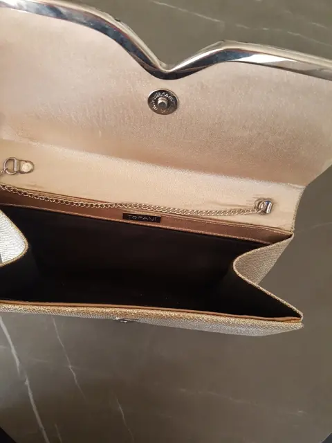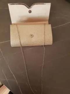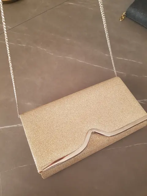 Clutch dorado con cadena, de muy buen tamaño, cabe un celular y cartera, ideal para fiesta, super combinable