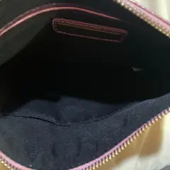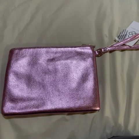 Clutch Rosa brillante con piedras incrustadas de fantasía. Con zipper y agarradera. Nueva, sin usar, tiene etiqueta. Mide 24 cm x 18 cm.