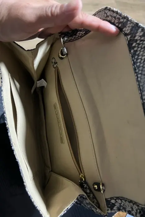 Clutch vintage de piel de víbora en excelente estado, SIN cadena, ideal para fiesta de diciembre. Medidas: 24cm x 18cm x 4cm.