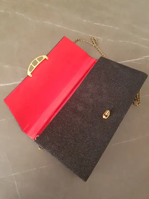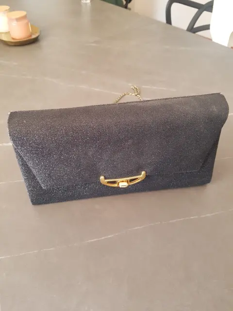 Clutch negro con cadena, usado una vez, ideal para fiestas, tiene muy buen tamaño, cabe un celular y una cartera