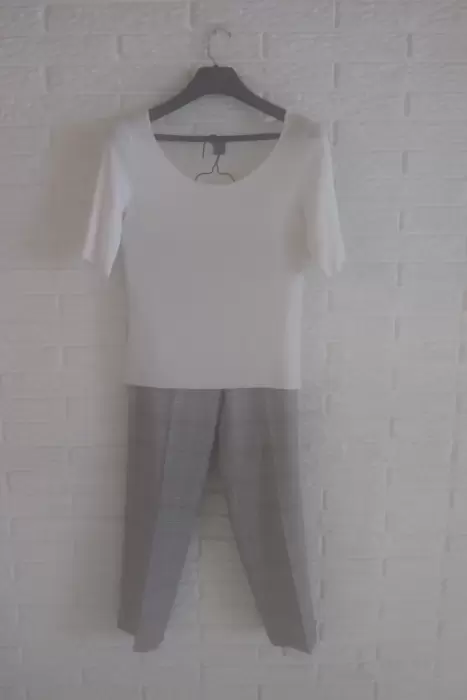 Blusa Ann Taylor Petite y Pantalón Novo Stilo. Blusa Mca. Ann Taylor petite blanca, 63% rayon, 37% nylon, talla MP USA 32/34 México, manga arriba del codo, cuello redondo, seminueva, solo 3 puestas, sin detalles, excelentes condiciones, el precio regular en tienda es de $ 550.00, la estoy vendiendo en $ 250.00 y Pantalón formal Novo Stilo, multicolor cuadros en azul claro, negro, blanco y café claro, da una tonalidad en gris claro, talla 7, recto, con bolsas al frente, 55% polyester, 45% lana, buenas condiciones,poco uso, sin detalles, se entrega tal y como se ve en las fotos, el precio en tienda es de $ 550.00 lo vendo en $ 300.00 El conjunto queda en $ 550.00 Tambien se vende por separado. Te invito a que visites mi closet y armes tus propios conjuntos.